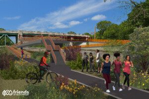 For the past five years Friends has diligently worked toward a solution to this issue. This site provides a unique challenge in that it is landlocked by private landowners with limited access for maintenance or repairs. Friends implemented temporary, low-cost fixes, but these were unsuccessful due to increased water in the area. Working with a local engineering firm, Friends identified another solution that would reside solely on Friend’s property. Due to limited space, this solution is more costly than originally anticipated. Friends will place a pipe underneath the trail that will carry the water from the drainage pipe from railroad property and connect into existing drainage on the river side of the trail and flow to the river.